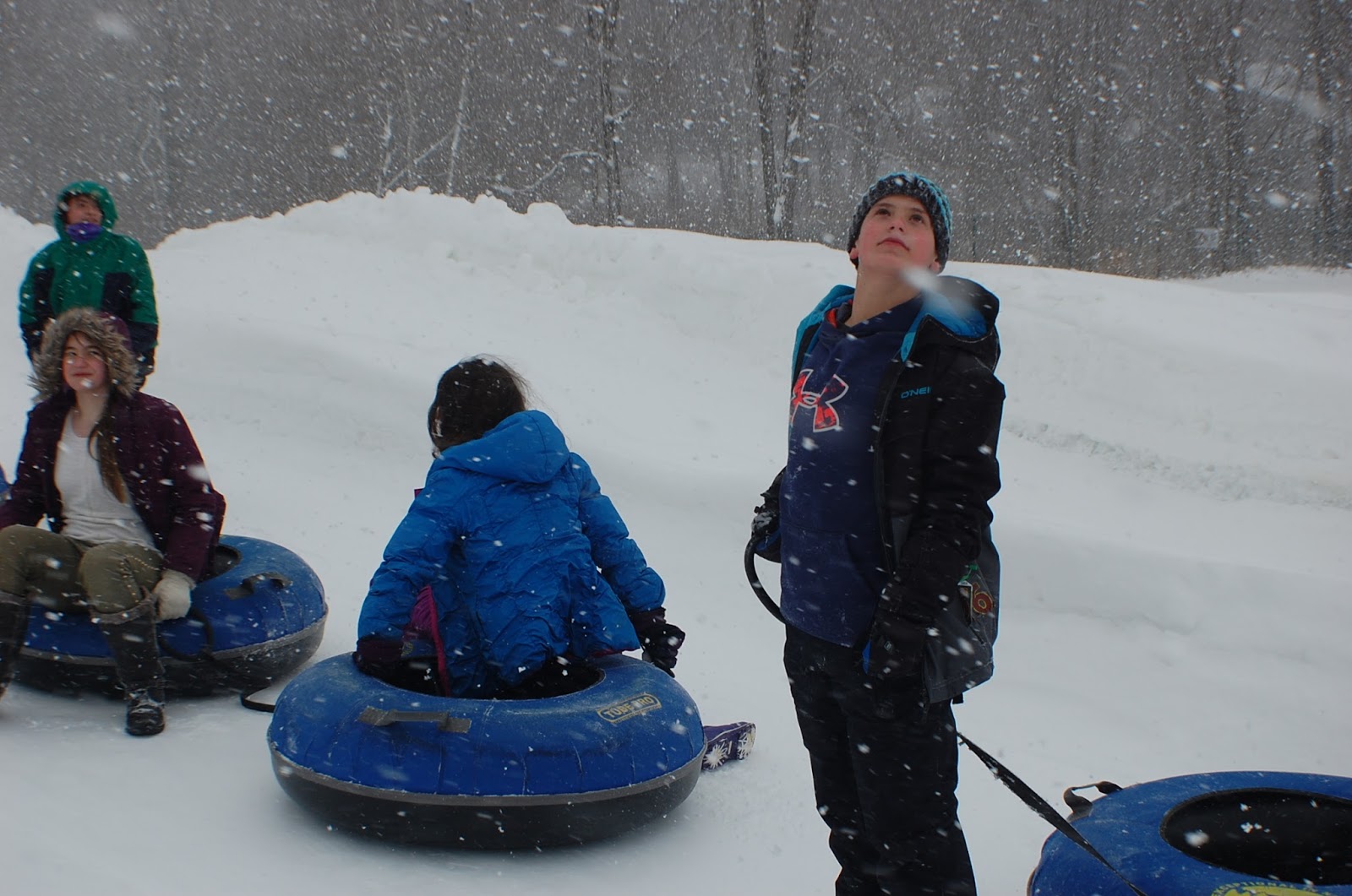 It has long been a Summers-Knoll tradition that the entire school goes ice skating together on the Friday before mid-winter break. Our tiny school, however, has grown into a small school, and we're now large enough that having all of us on an ice rink at once is a bit unwieldy. Last year, the middle schoolers inaugurated a new tradition: While the lower schoolers went ice skating, we traveled to Lansing to Hawk Island Park to go snow tubing.